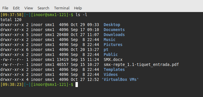 Options can be used with commands to expand or modify the way a command behaves. For example, using the -l option of the ls command results in a long listing, providing additional information about the files that are listed, such as the permissions, the size of the file and other information: