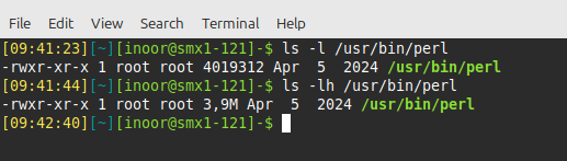 By default the -l option of the ls command displays files sizes in bytes and if we put -h option is added the file sizes will be displayed in human-readable format: