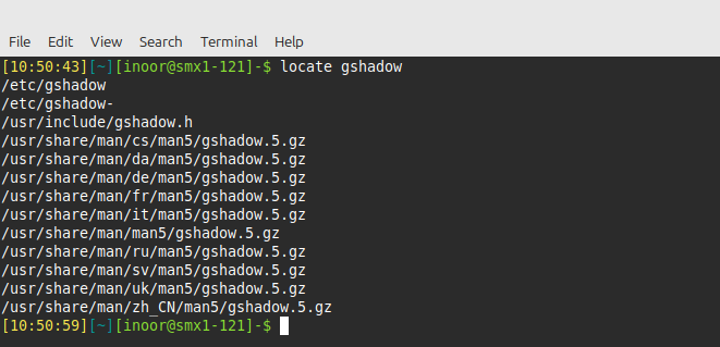 To find any file or directory, use the locate gshadow command. This command searches a database of all files and directories that were on the system when the database was created. Typically, the command to generate this database is run nightly.