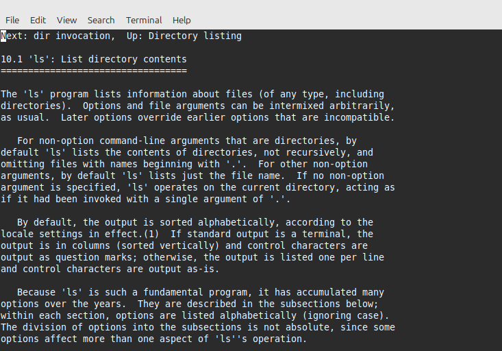 To display the info documentation for a command, use the info command.
