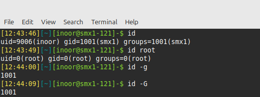 The id command is used to print user and group information for a specified user.When executed without an argument, the id command outputs information about the current user, allowing you to confirm your identity on the system.If the command is given a username as an argument, such as root, it displays information about the specified account.To print only the user’s primary group, use the -g option.The id command can also be used to verify the user’s secondary group memberships using the -G option. This will print all the groups that a user belongs to, both primary and secondary.