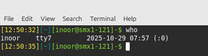 The who command displays a list of users who are currently logged into the system, where they are logged in from, and when they logged in.For exemple: