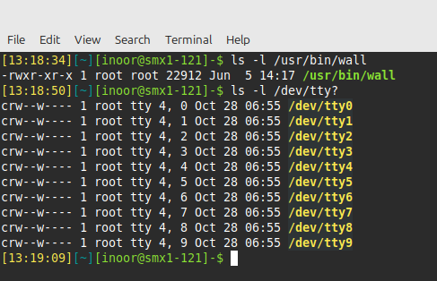 This access is important because the /usr/bin/wall command sends messages to terminals, which is accomplished by writing data to files like the following: