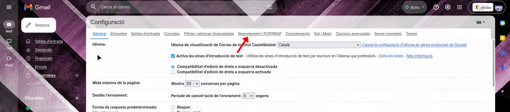 Vaig anar a la finestra de “Reenviament i POP/IMAP”.