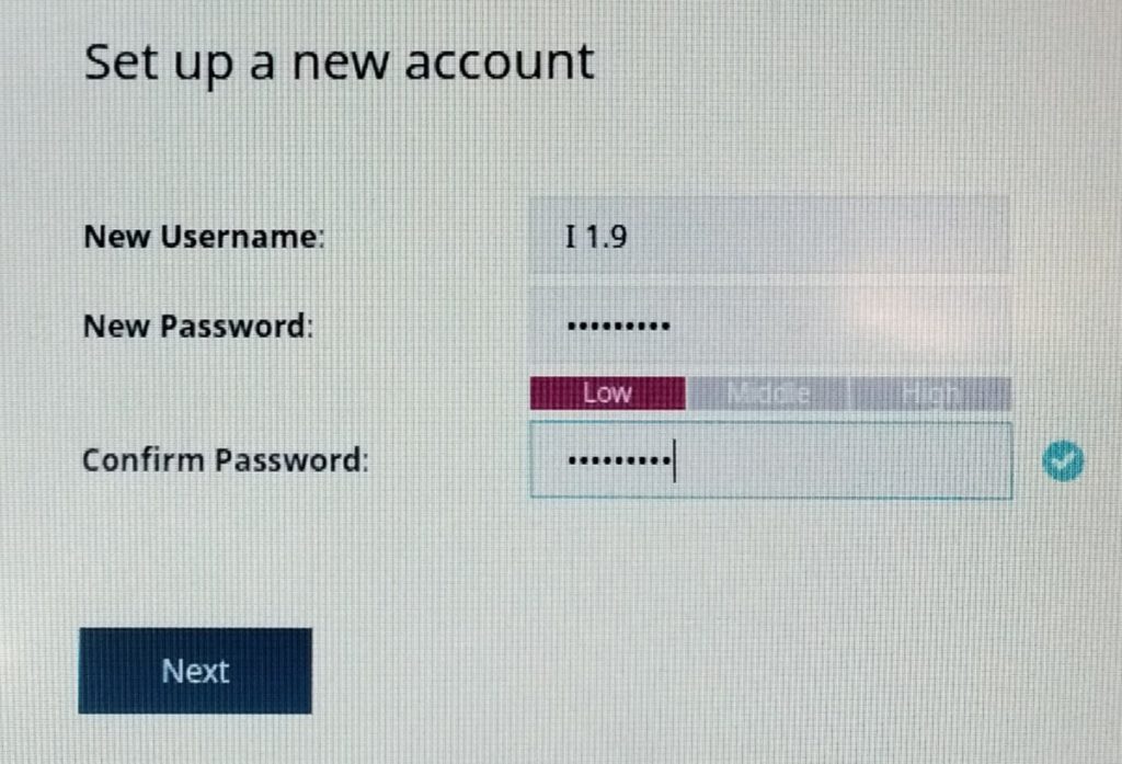 Per motius de seguretat, el dispositiu us requerirà configurar un nou compte. Introduïu un nou nom d’usuari i una contrasenya que s’utilitzarà per a tots els inicis de sessió futurs a la interfície de gestió.