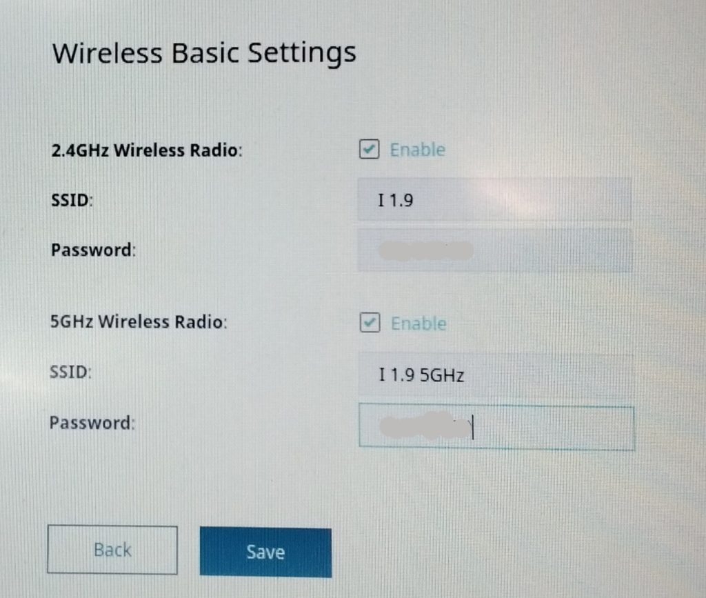 Aneu a la pàgina Wireless Basic Settings (Configuració Bàsica Sense Fils) per configurar els noms de la vostra xarxa (SSID) i les contrasenyes. Assegureu-vos que tant les ràdios de 2.4GHz com les de 5GHz estiguin habilitades.