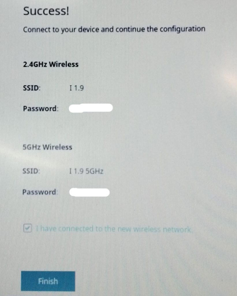 Marqueu la casella: “M’he connectat a la nova xarxa sense fils.” i feu clic a Finish (Finalitzar).