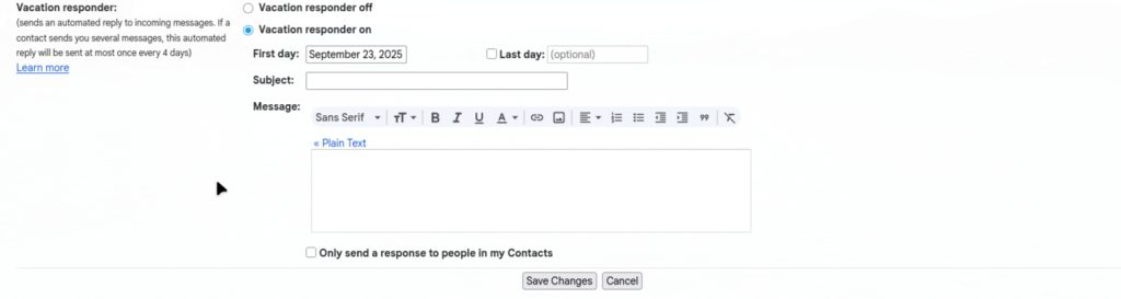 Per possar la resposta automatica he anat a gmail, he fet clic a l’icona de l’engranatge i a “Mostra tota la configuració”.