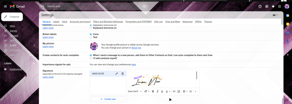 Configuració d’una signatura: click ”Configuracio” Despres click en ” Mostre tota la configuracio” Click en ”Signatura”