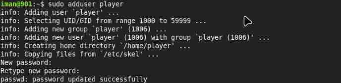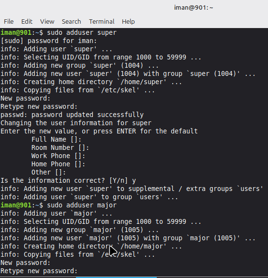 sudo adduser [nom_usuari]. Exemple:sudo adduser iman.