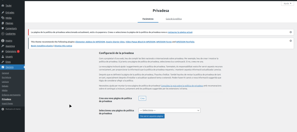 Galetes i configuració de privadesa: