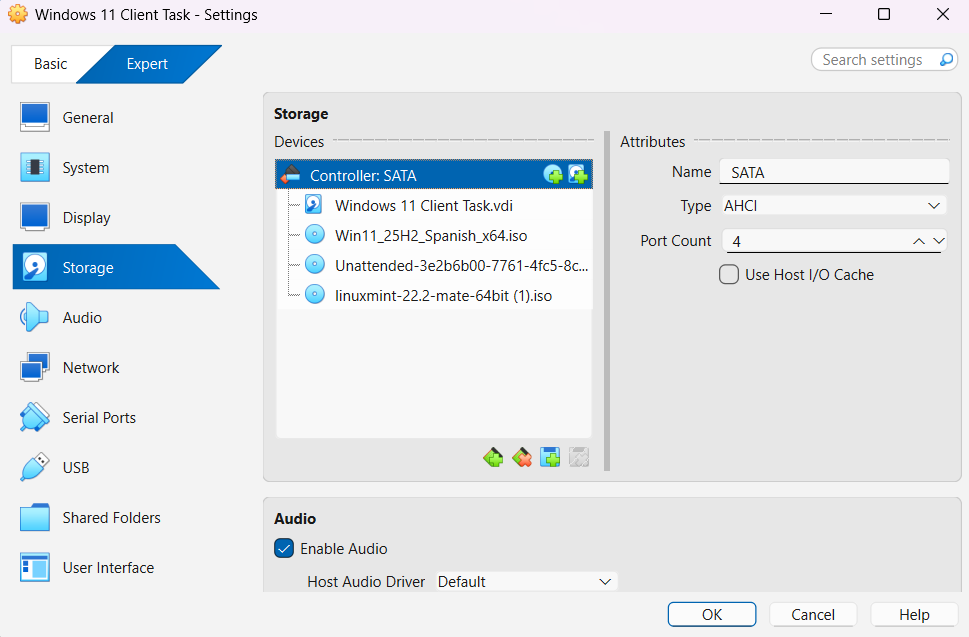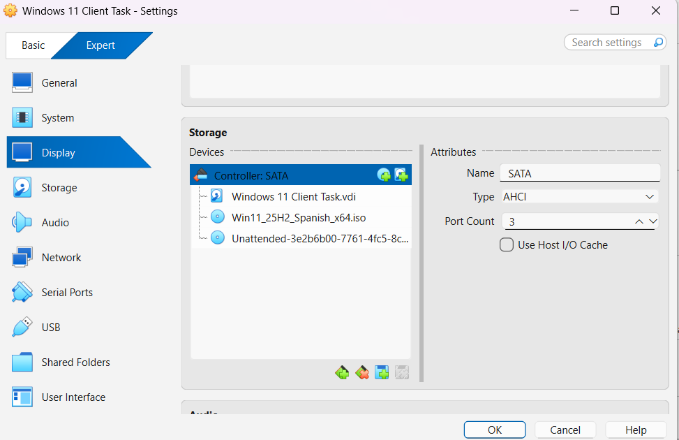 - A VirtualBox, he afegit la ISO com a Unitat Òptica dins del controlador SATA.