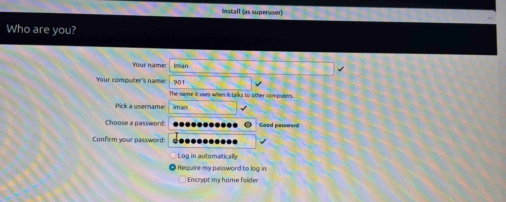 - Qui sou?: He posat el meu nom, el nom de l’equip i he creat l’usuari “iman” amb la seva contrasenya.