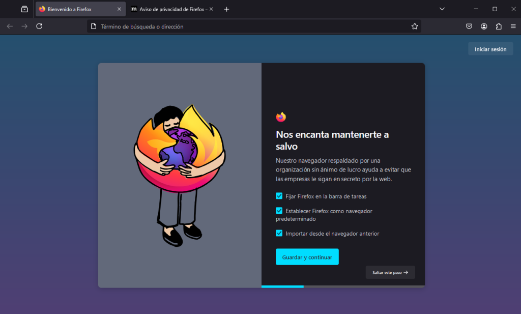Un cop acabada la instal·lació, obre Mozilla Firefox. Ens encanta mantenirte a salvo amb navegació privada.
