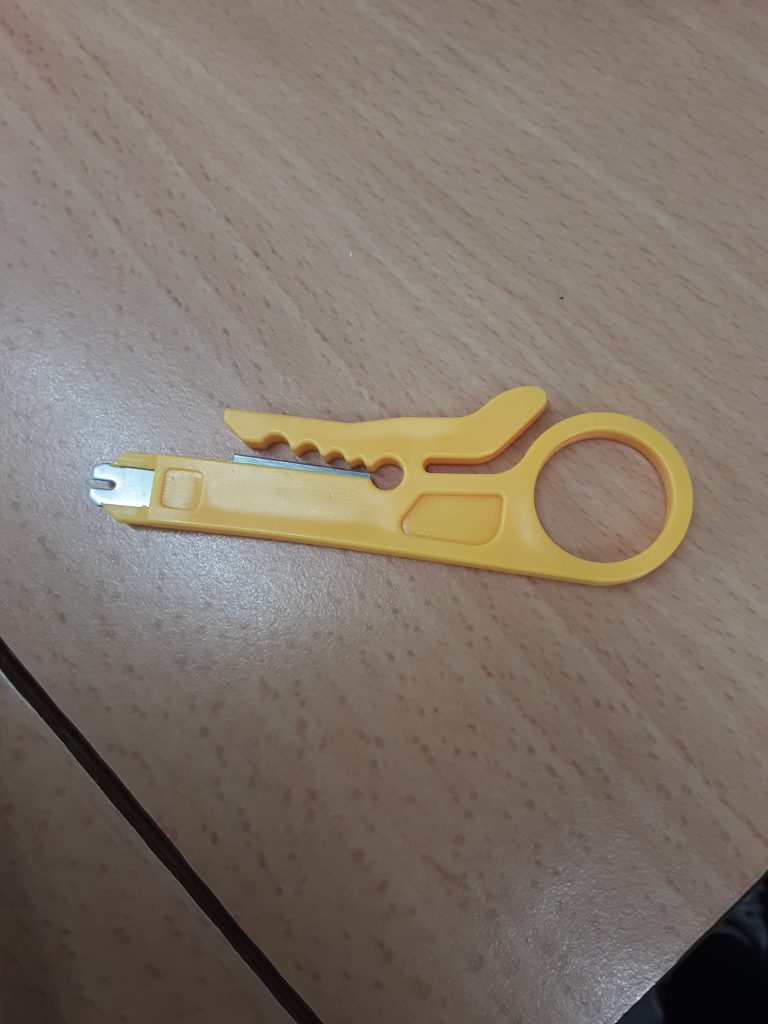 Eina especialitzada per a retirar la coberta exterior del cable.