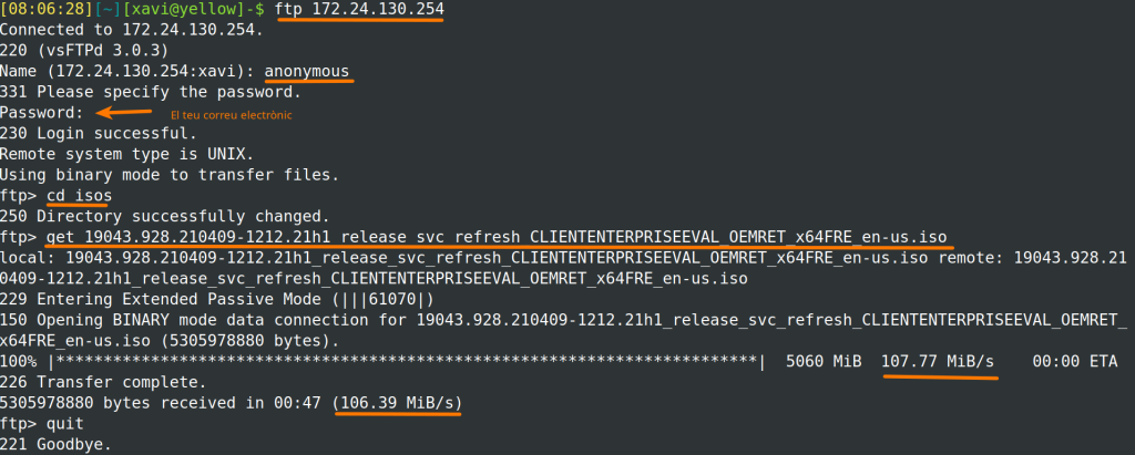 El nostre professor ens ha enviat un codi per ajudar-nos a comprovar la velocitat real de transmissió de dades dels nostres cables.