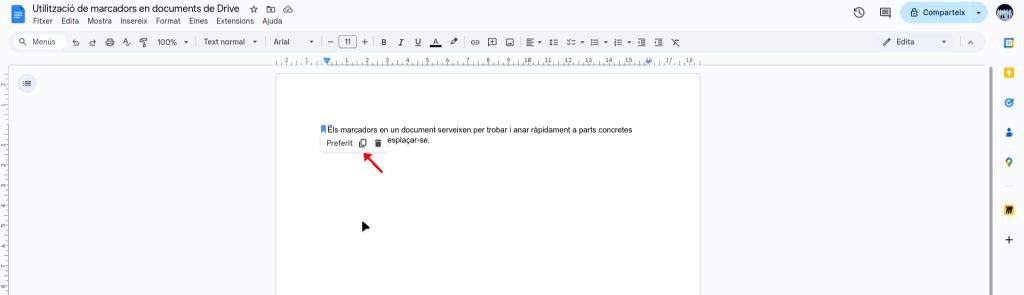 Apareixerà un ícon de marcador al costat del text.